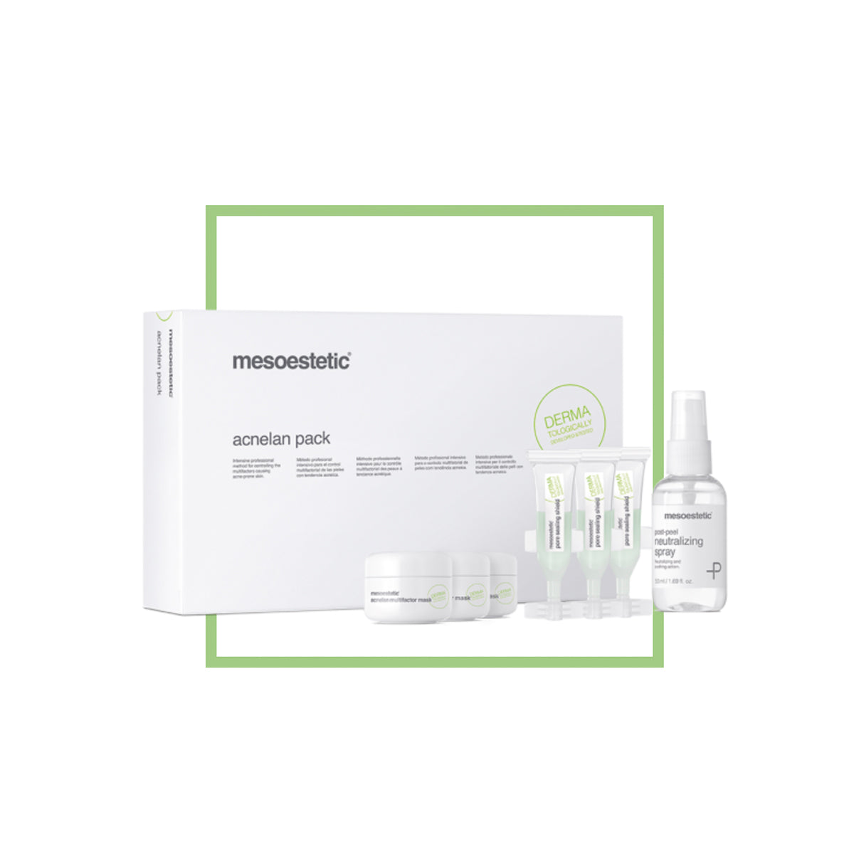 acnelan® er en medicinsk-kosmetisk dybderensende ansigtsbehandling af acne, der er effektiv, hurtig og praktisk. Den tilbyder en tværgående tilgang til at tackle de forskellige faktorer, der udløser hudtilstanden, ved at kombinere en intensiv klinisk behandling til professionelt brug med en serie af hjemmevedligeholdelsesprodukter.